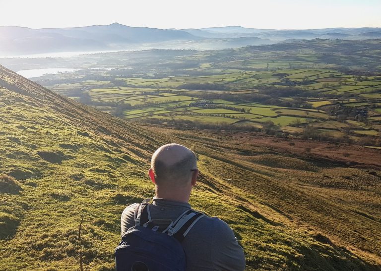 Take a 12 minute drive to the col between Mynydd Troed and Mynydd Llangorse, makes this a 255m climb in three-quarters of a mile as a straight climb up. I love the name of Mynydd Troed - meaning Foot Mountain and evoking a giant’s foot left on the landscape when viewed from afar. Before taking on the climb you can check out the location of a Neolithic chambered tomb a short walk up the hill from the road and looking down over Cwm Sorgwm to the east. As with Mynydd Llangorse, which can be climbed with this hill, there are several options for walking, allowing you to select according to preferred views, prevailing weather and length of walk. After the walk, drop into Llangorse village or to the Dinas Castle Inn for a pint.